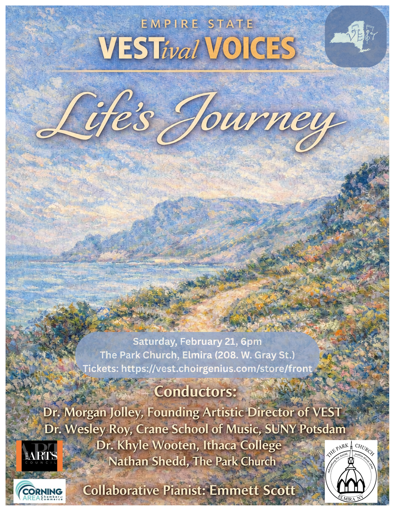 Life’s Journey traces the arc of a human life shaped by experience, struggle, connection, and hope. Through a genre-spanning choral program, the concert follows the path from belonging and identity, through challenge and responsibility, toward a renewed commitment to love, justice, and peace. Each work reflects what we learn by living—and how those lessons call us not inward, but outward.