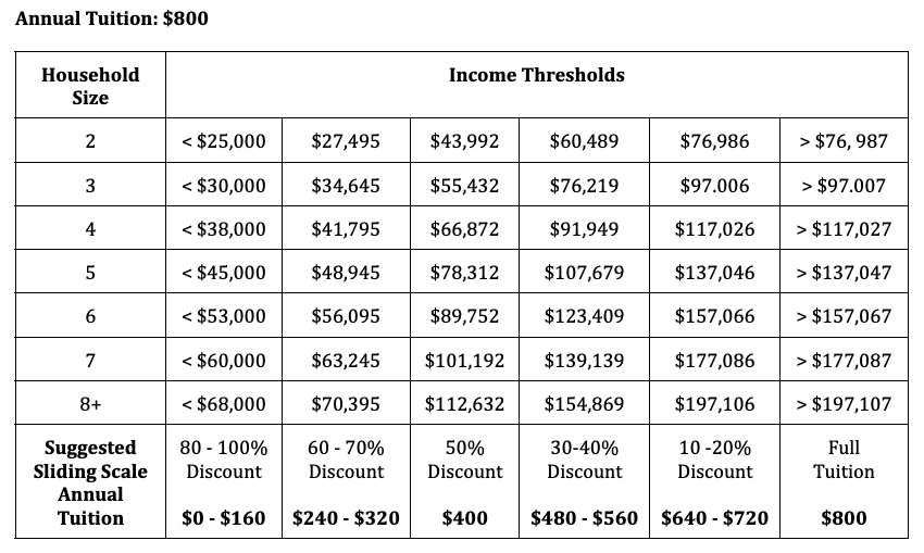 Sliding Scale Tuition Model based on Household Size and Household Income
