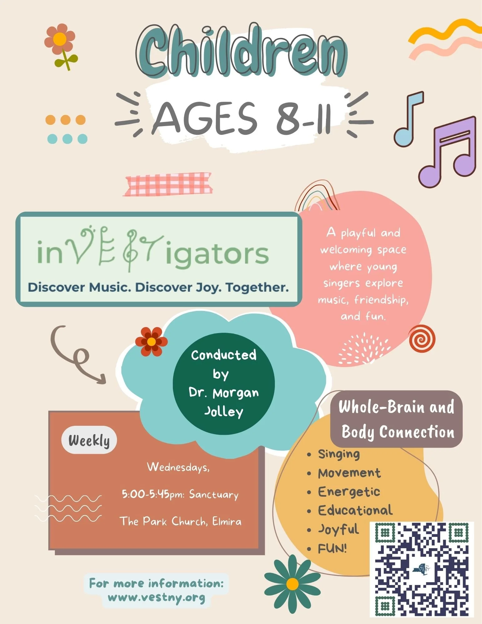 A playful and welcoming space where young singers (ages 8–11) explore vocal fundamentals, musical play, and teamwork through fun and diverse repertoire. Designed to spark curiosity and confidence, InVESTigators nurture a lifelong love of singing while building a strong musical foundation.